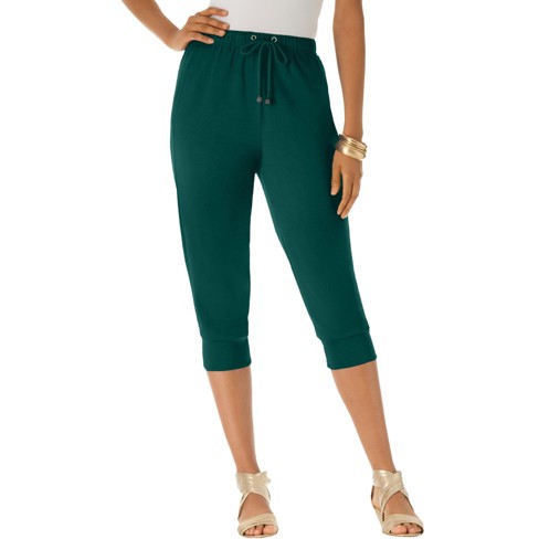 Roaman s Women s Plus Size Drawstring Soft Knit Capri Pant S Emerald Green Target