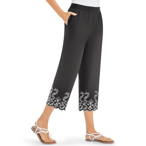 Collections Etc Embroidered Scallop Hem Cotton Capri Crop Pants Large Black Target