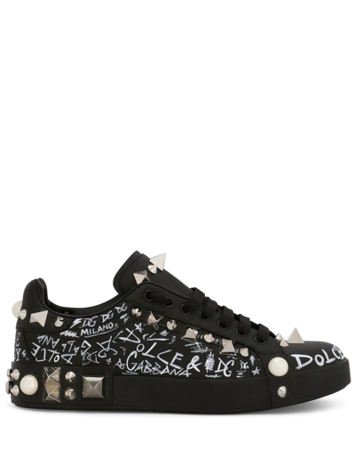 Dolce Gabbana Portofino Spike stud Low top Sneakers In Black ModeSens