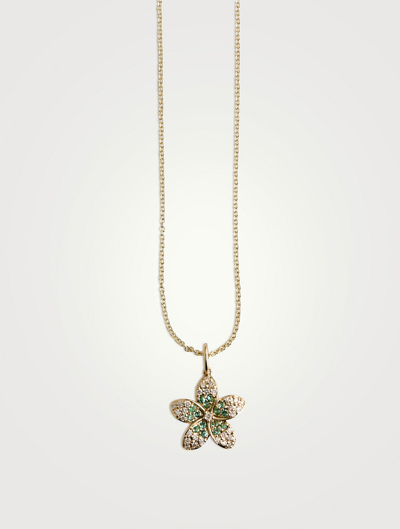 SYDNEY EVAN 14K Gold Plumeria Pendant Necklace With Diamonds And Emeralds Holt Renfrew