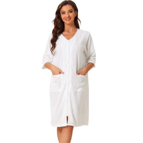 Cheibear Womens Waffle Pajama 3 4 Sleeves Spa Bathrobe Loungewear Zipper Up Robes White Large Target