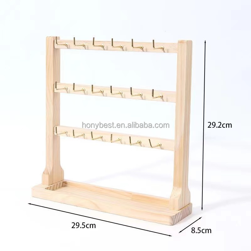 Wood Jewellery Display Rack Stand Wholesale Earrings Card Holder Frame with Hooks Custom Natural Wood Jewelry Packaging Display BestSuppliers