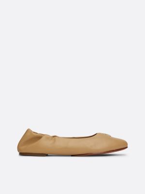TH Monogram Plaque Leather Ballerinas Khaki Tommy Hilfiger
