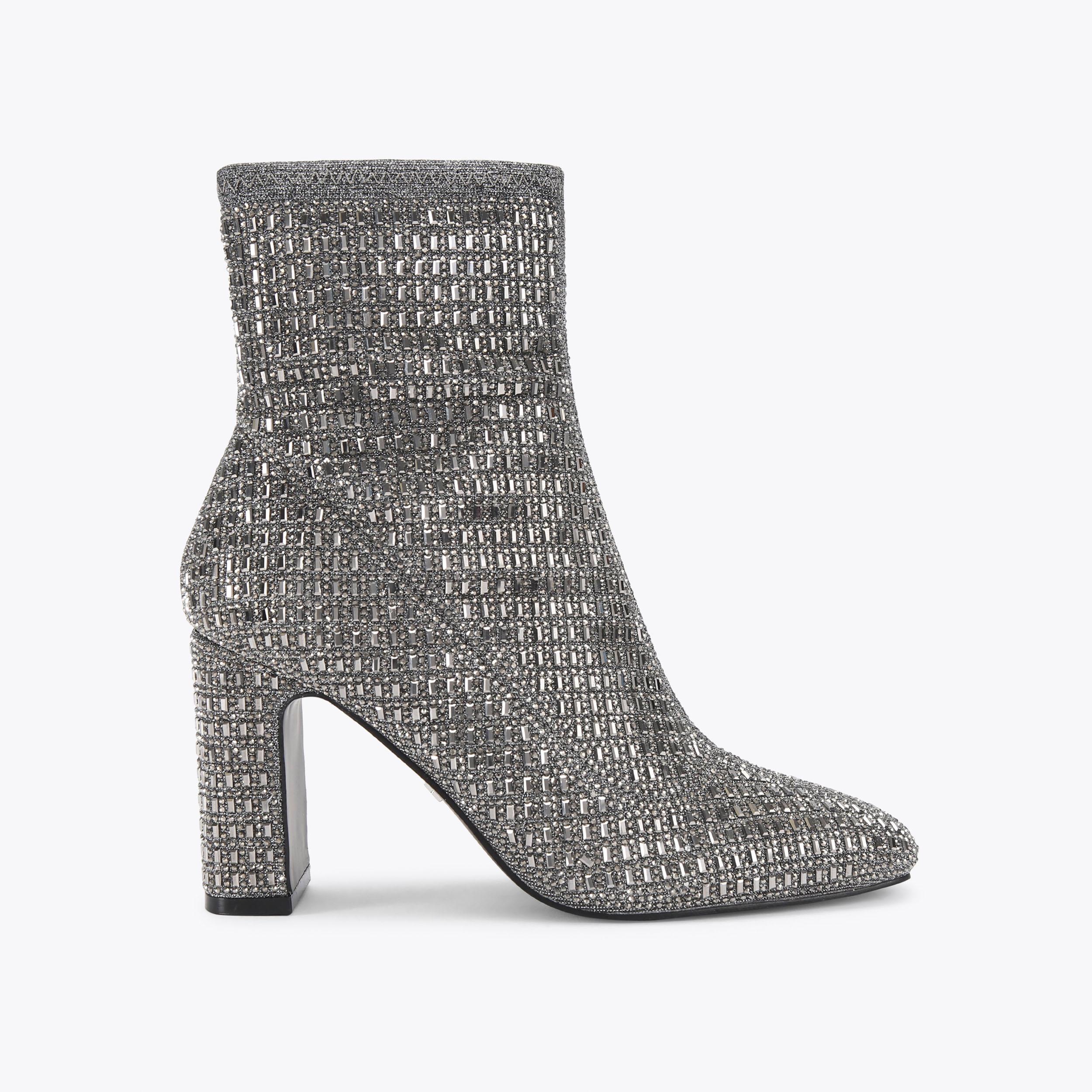 FRANCESCA DETACHABLE GEM Black Microsuede Heeled Ankle Boot by KG KURT GEIGER