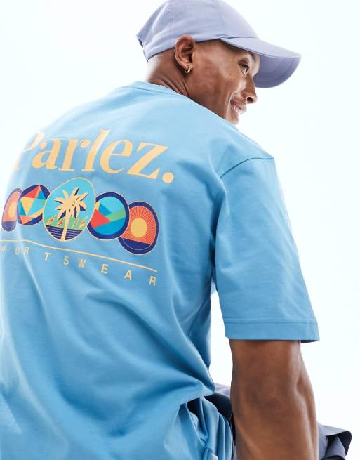 Maglietta con ricamo deals, Parlez T shirt blu in cotone con ricamo ASOS deals