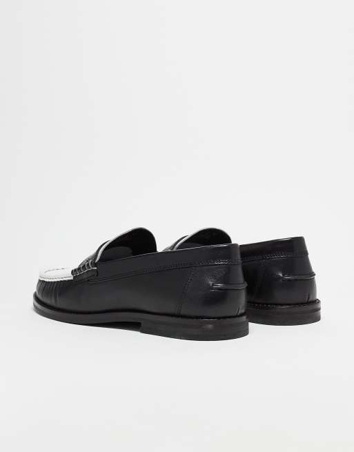 ASOS DESIGN penny loafers in black and white leather ASOS