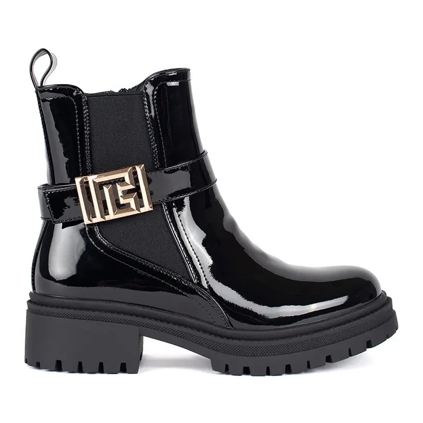 - patent chunky ankle boots