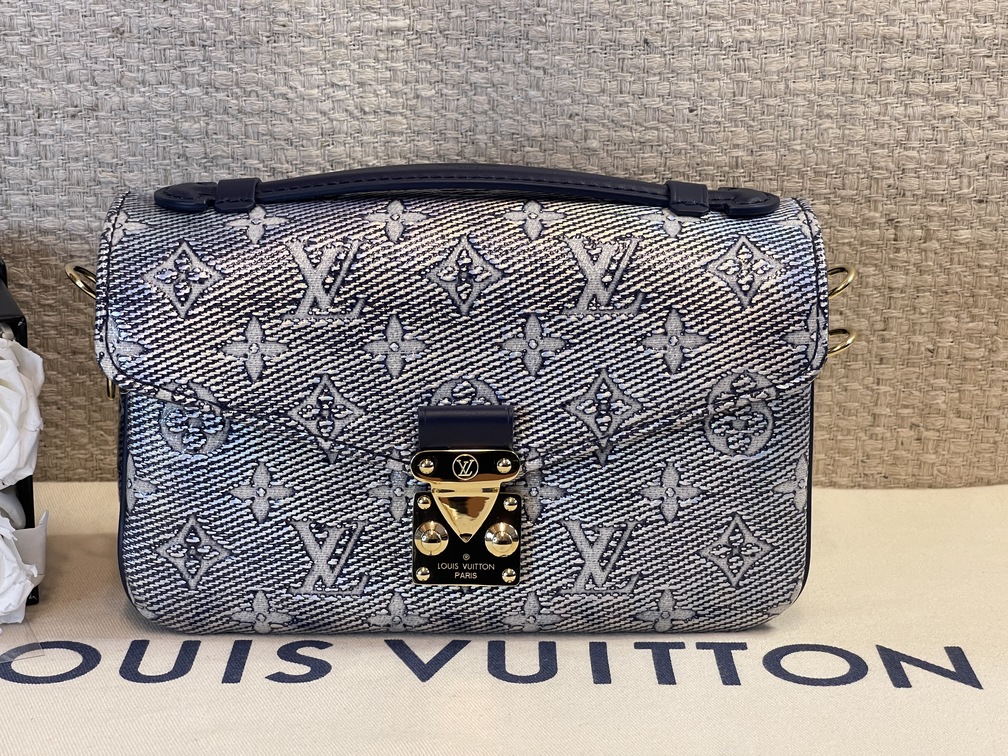 LOUIS VUITTON Mono Empreinte Pochette Metis Gold Buckle Shoulder Bag Blue