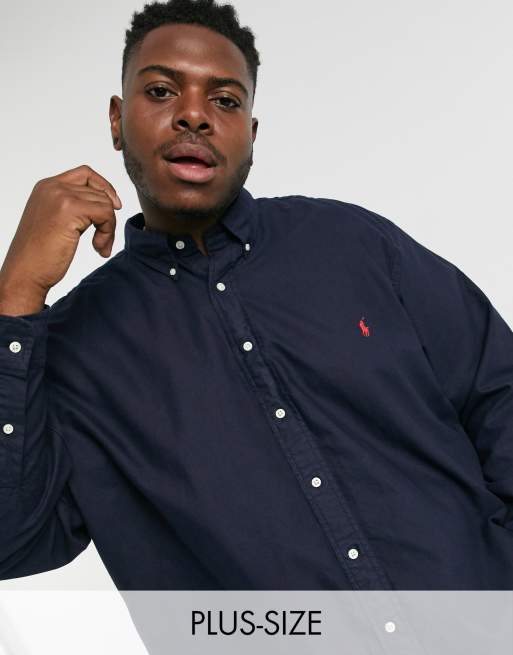 Polo Ralph Lauren Big Tall player logo garment dye oxford shirt in navy ASOS
