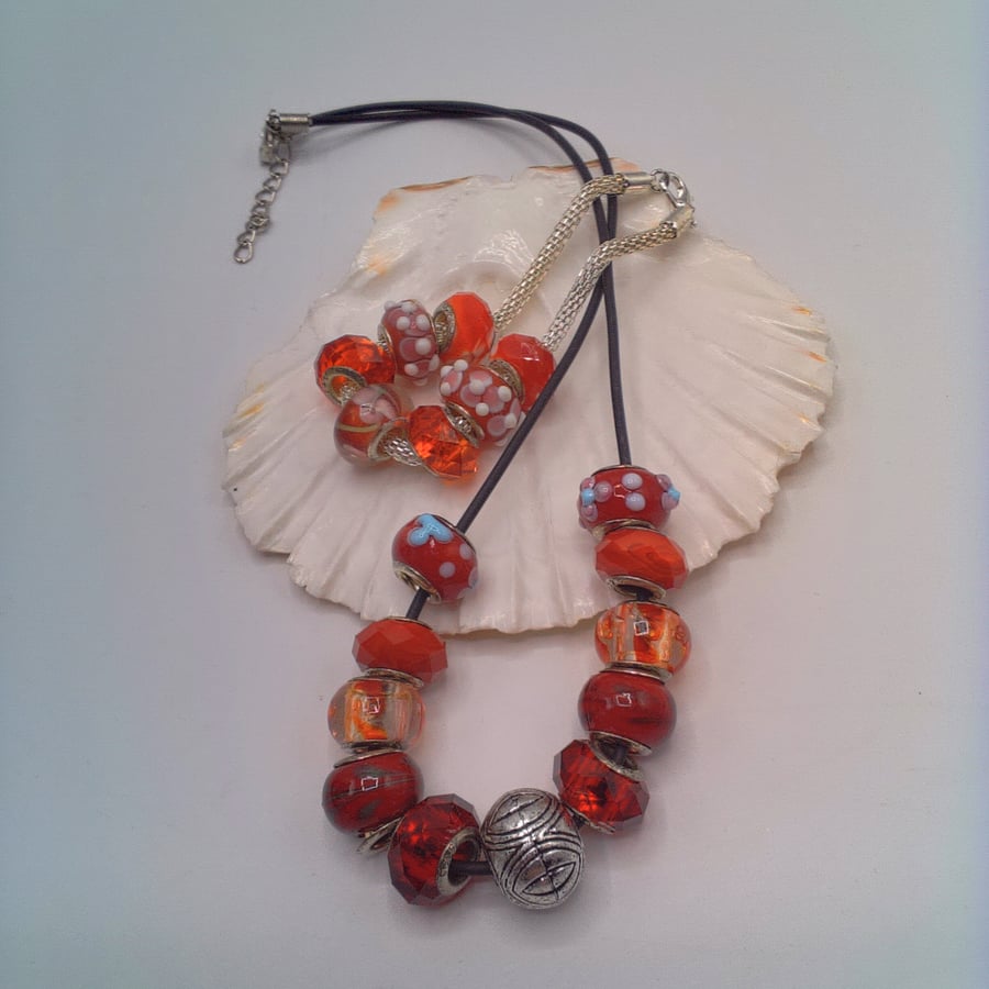 M S Jewellery Set Statement Necklace Bracelet Red Silver Beads. New Unused eBay