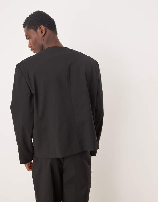 ASOS DESIGN Giacca da abito doppiopetto squadrata senza colletto nera ASOS