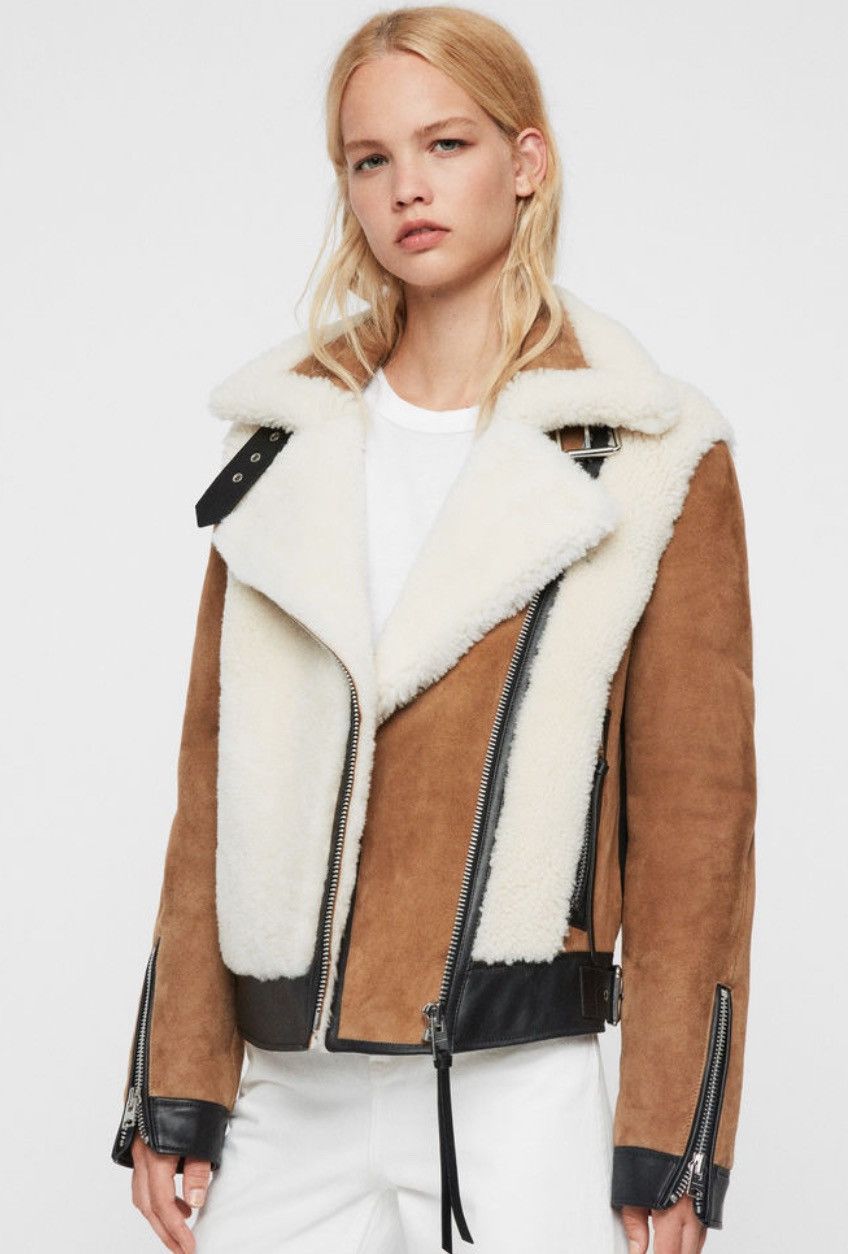 Shearling all saints deals, Allsaints Elia Shearling Biker Jacket Grailed deals
