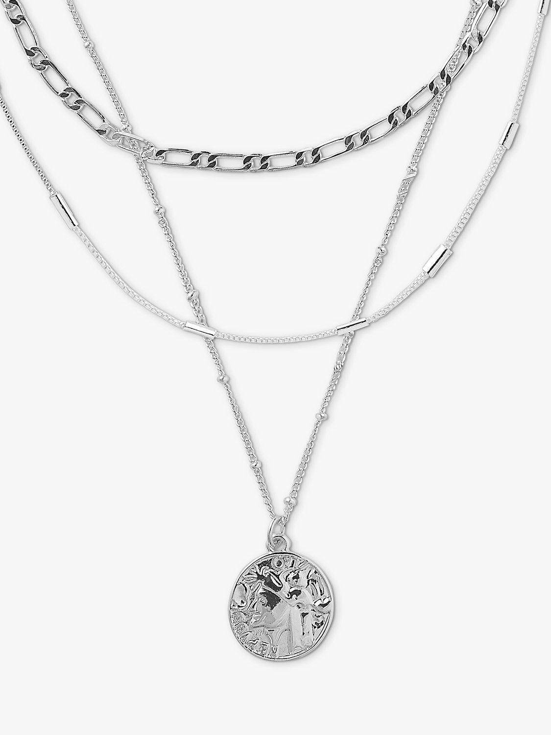 Orelia Coin Triple Chain Layered Necklace Silver