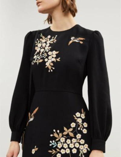 Ted Baker Lillian Graceful Embroidered Crepe Dress In Black ModeSens