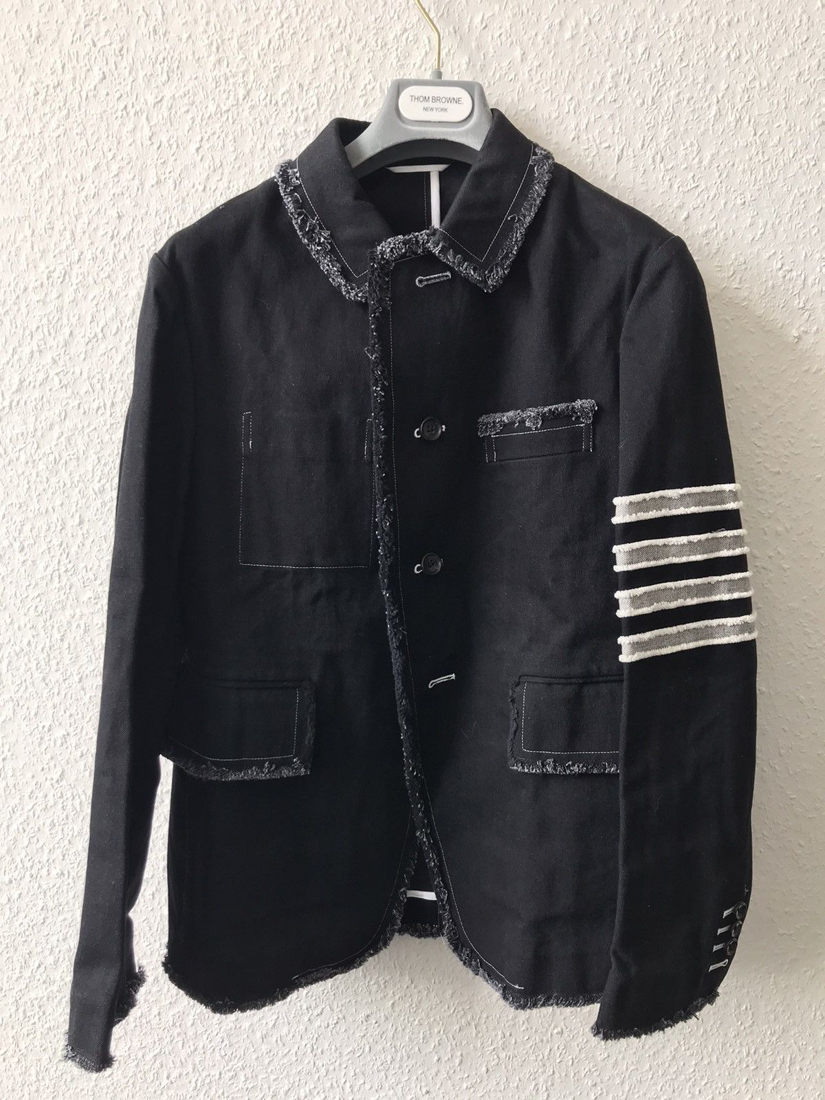 Thom Browne Thom Browne 4 Bar Cutaway Jacket in Washed Denim Grailed