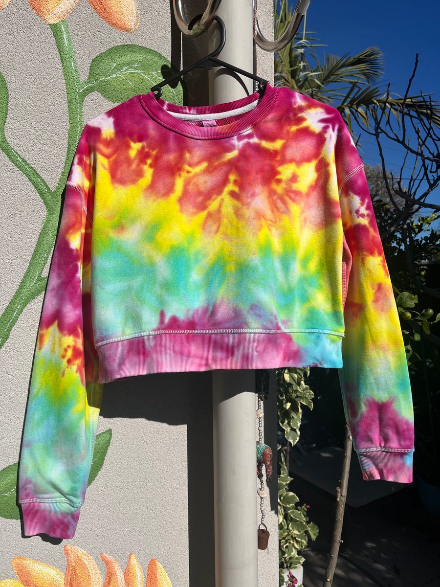 Ice dyed women s cropped tie dye jumper size XS RainbowMindsTieDye